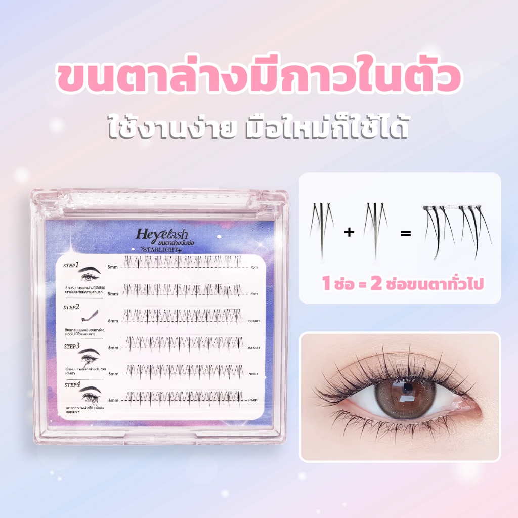 【ส่งด่วนจาก กทม.】HeyeLash ขนตาไร้กาว ขนตาล่างพร้อมกาวในตัวทุกรุ่น 5-6 มม. เบาสบาย ติดได้เลย 36 ช่อ