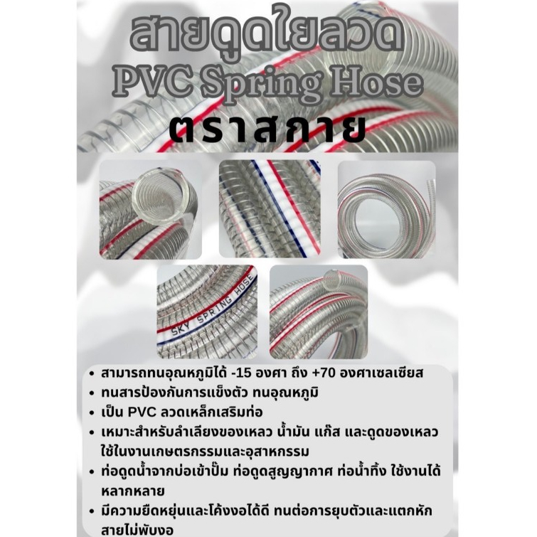 สายดูดใยลวด PVC ขนาด 1.2 นิ้ว/1.5 นิ้ว ยาว 6/12/24 ม. ทนแรงดันสูง แถมตัวรัดฟรี