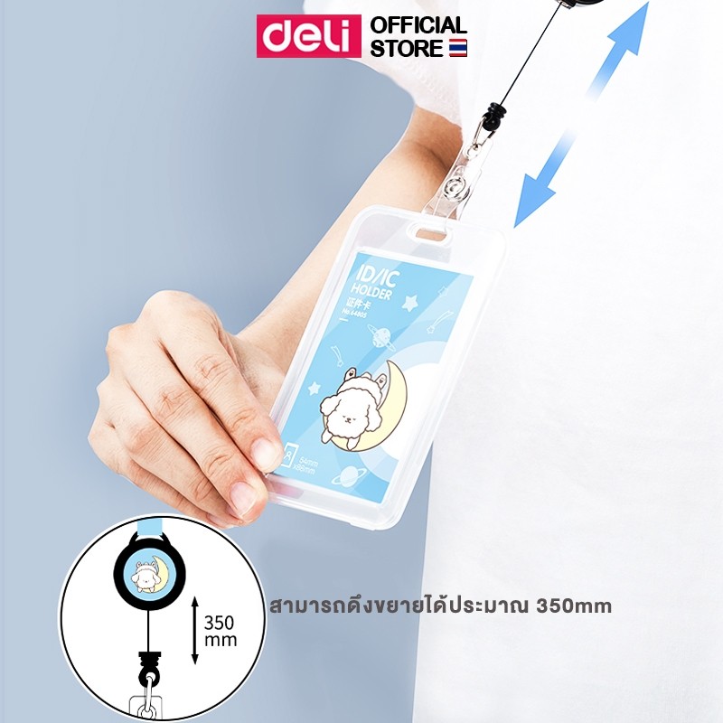 ที่ใส่บัตรพนักงาน แบบยืดหดได้ Deli สายคล้องบัตร ที่ใส่บัตรแนวตั้งพร้อมสายคล้องบัตร คลิปหนีบบัตร