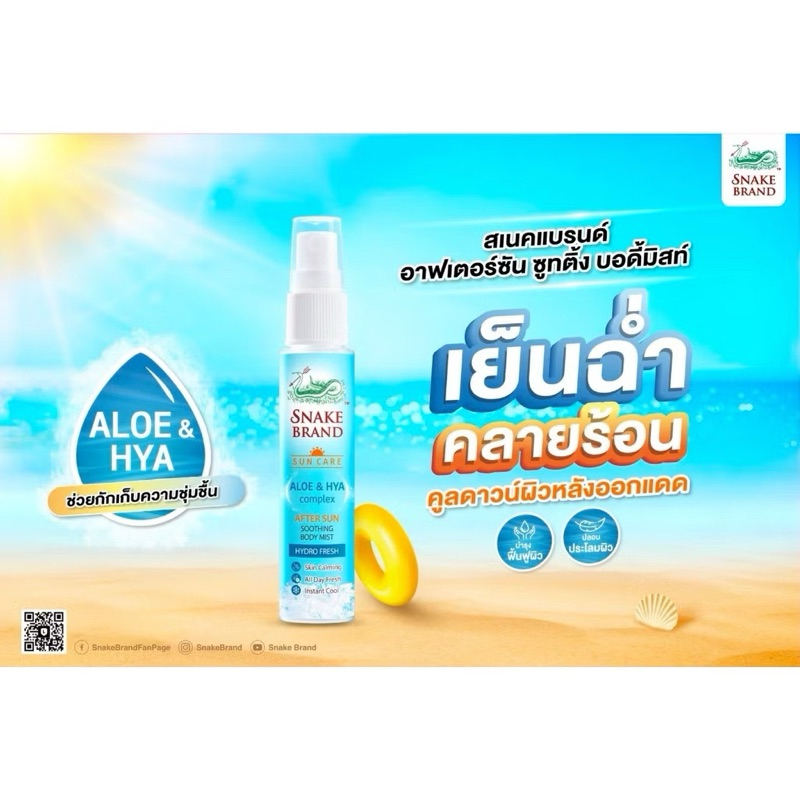 [ แพคคู่]Snake Brand ตรางู CooSPF 50 30ml x1+After Sun Body Mist 30ml x1สเปรย์เย็นกันแดด หลังออกแดด ตรางู