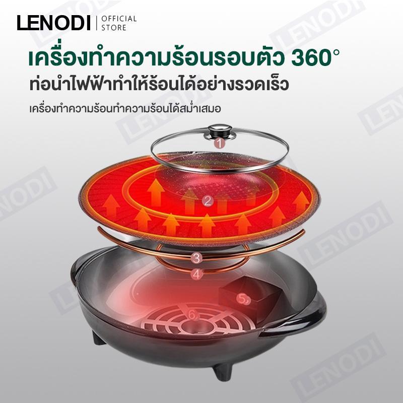 LENODI ถาดอบสไตล์เกาหลี 2in1 ปิ้ง+หม้อไฟ 1350W ปุ่มสมาร์ท BBQ+HOT POT เหมาะสำหรับ 4-6 คน