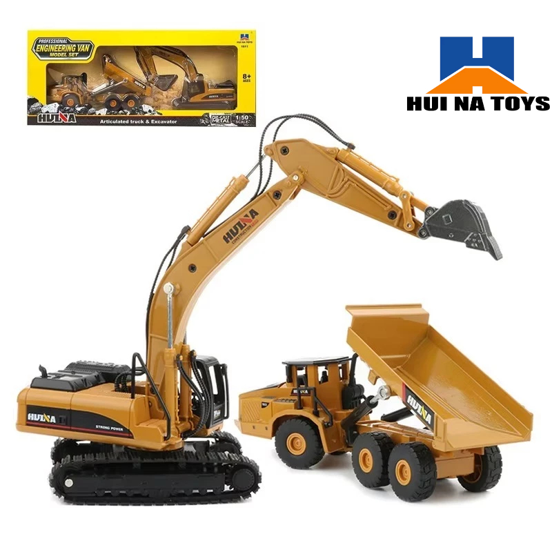 โมเดล แม็คโคร&รถดัมพ์ 1:50 รถก่อสร้าง 2IN1 ขนาดจำลอง HUINA 1611