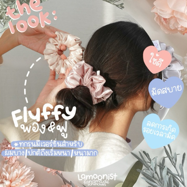 Lamoonist • FLUFFY • (ผมหนามาก) • EXTRA thick hair scrunchie • ยางมัดผมซาตินสีพื้น