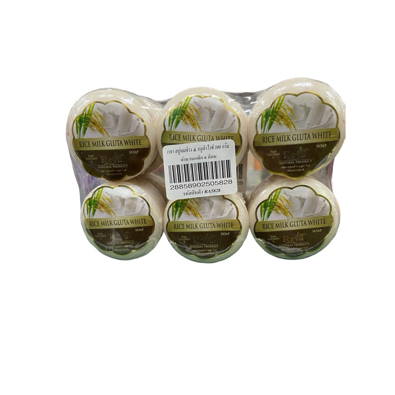 Reya สบู่เรยา สูตร นมข้าว กลูต้า ไวท์ (ก้อนกลม)(1แพ็คมี6ก้อน) น้ำหนักปริมาณก้อนละ 100 กรัม