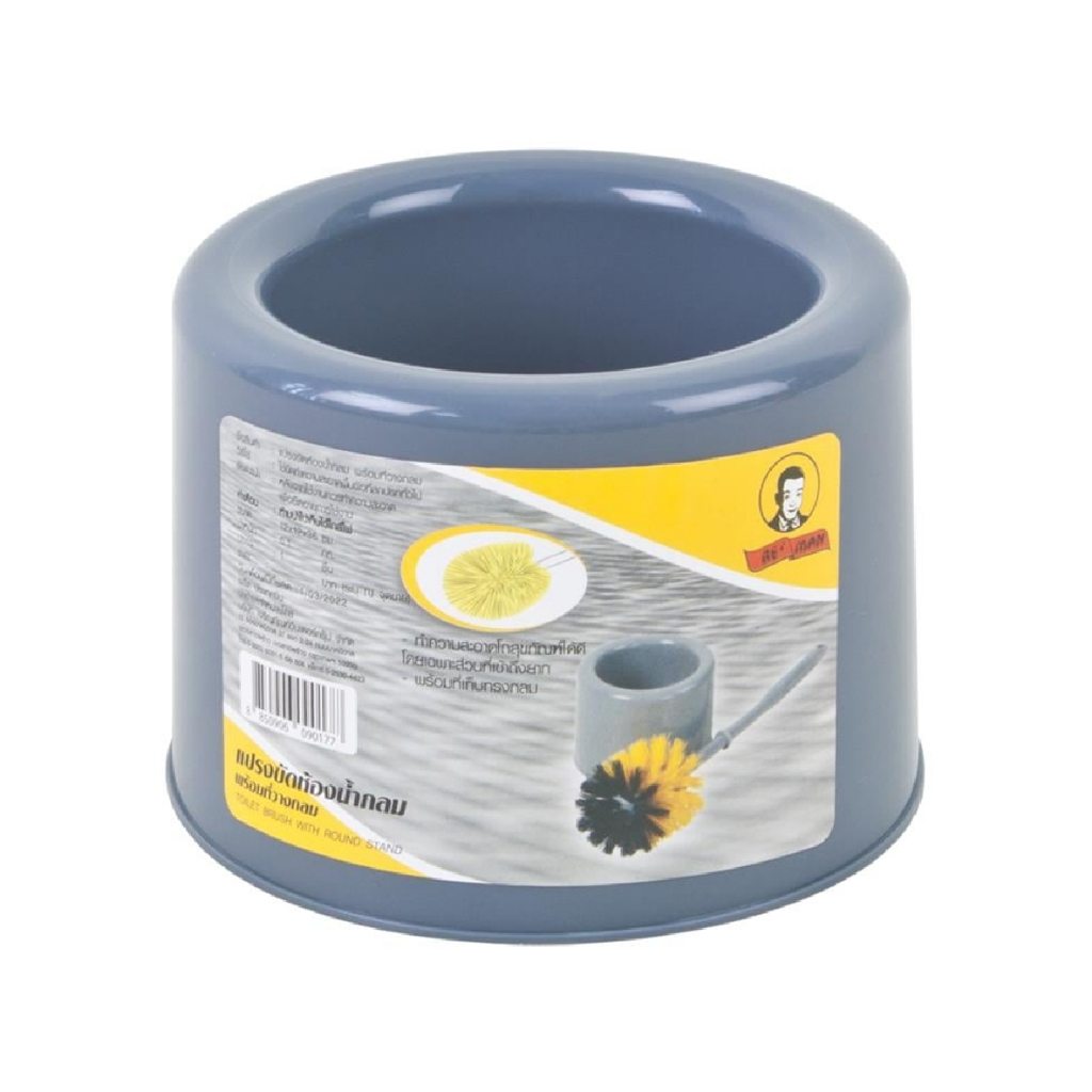 แปรงล้างสุขภัณฑ์ หัวกลม พร้อมฐานวางตั้งพื้นทรงกลม BE MAN สีเหลือง/เทา (BE-09)