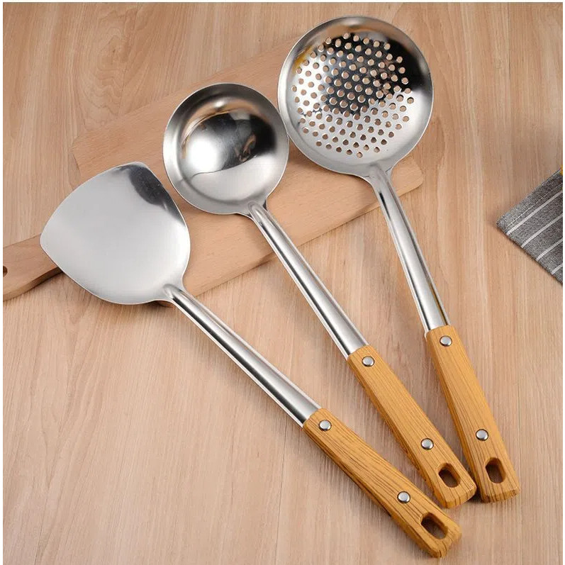 สแตนเลสทำอาหารหม้อ Shovel เครื่องครัวซุปช้อนไม้เลียนแบบ Handle Scoopเครื่องครัวสแตนเลส