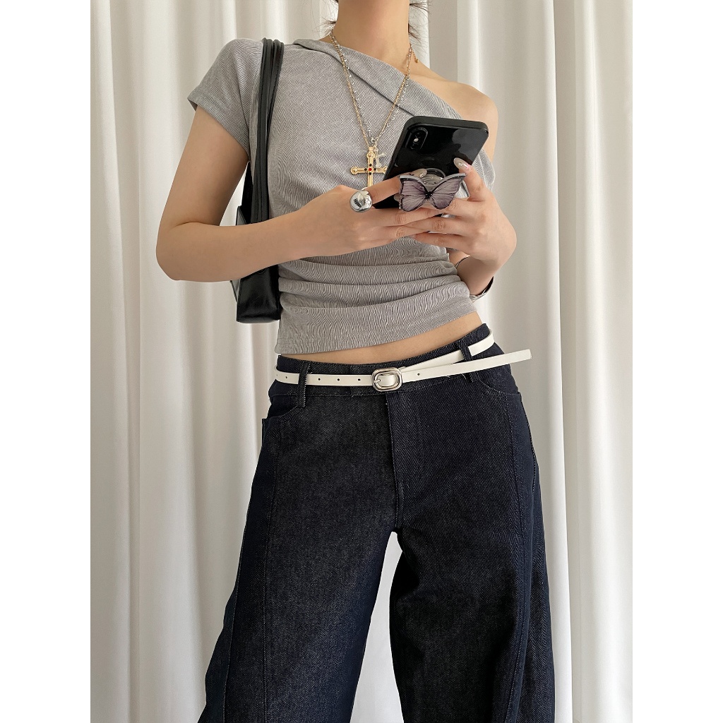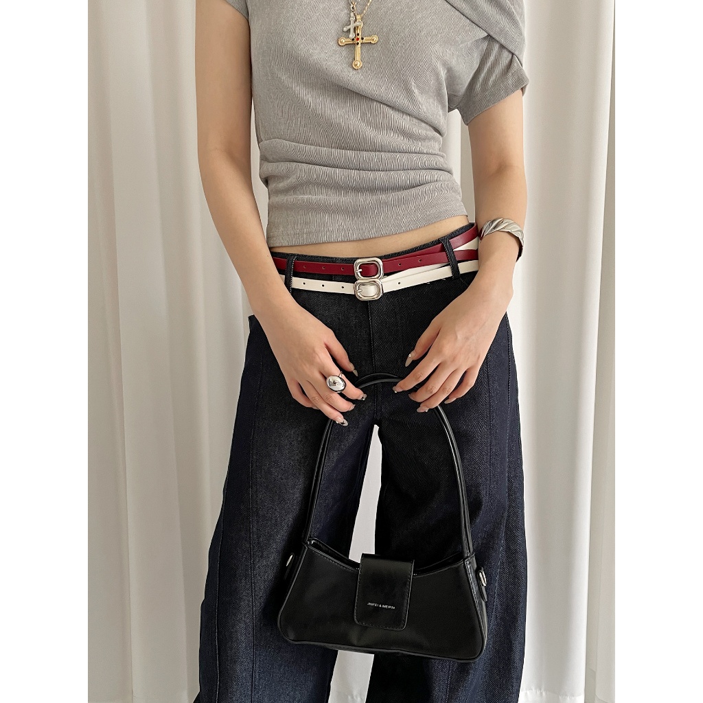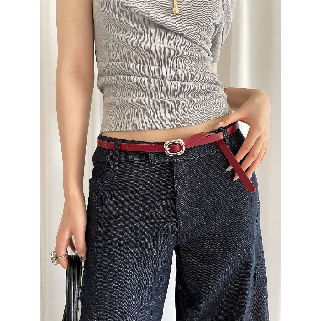 เข็มขัดบางสไตล์เกาหลีหรูหรา สำหรับผู้หญิง จับคู่ได้กับกระโปรงและกางเกงยีนส์