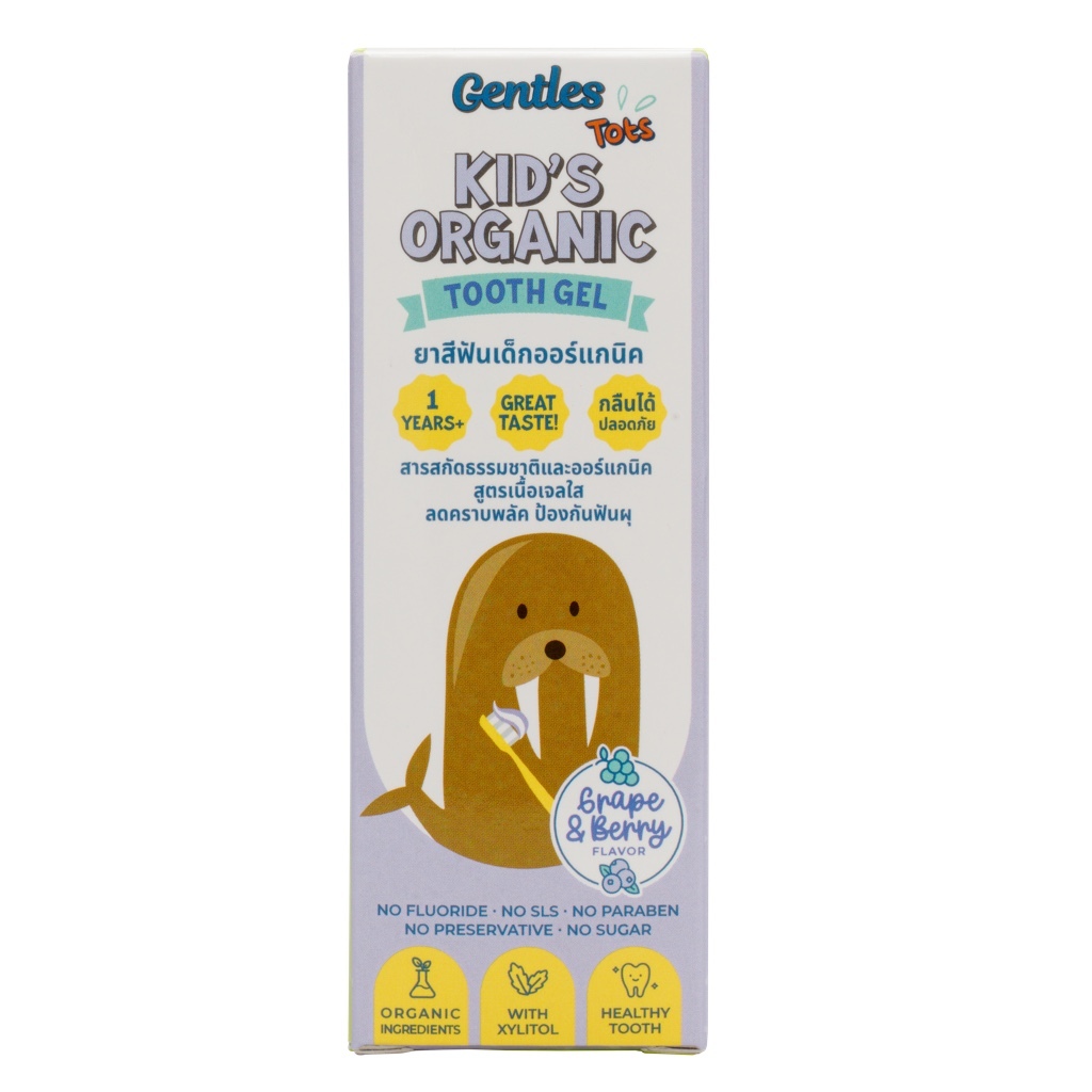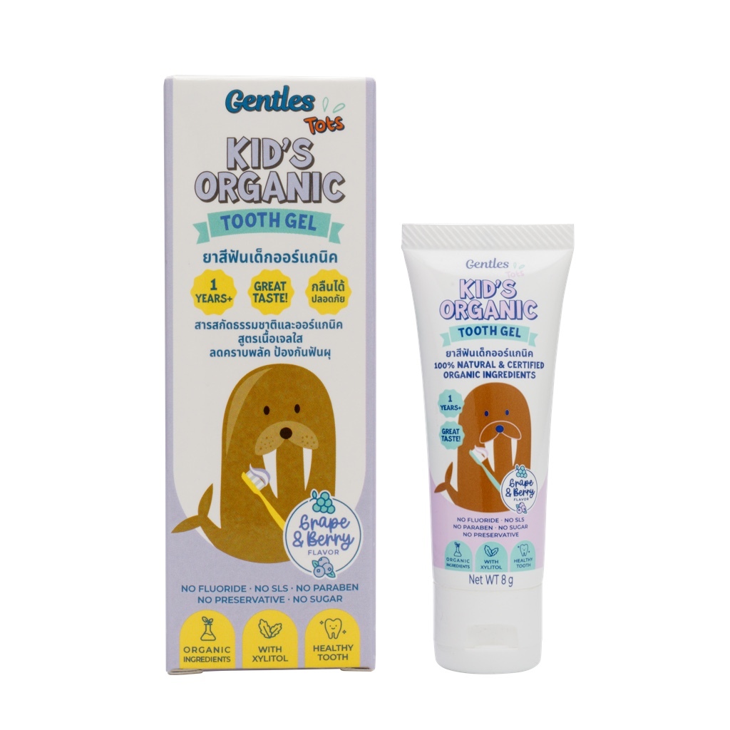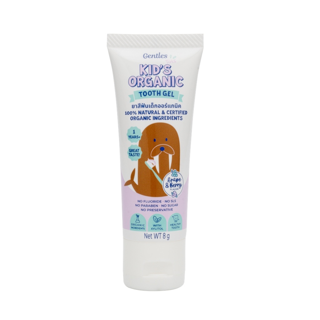 Gentles Tots -ยาสีฟันเด็กออร์แกนิค สูตร Kids 1ปี+ กลืนได้ ไม่อันตราย (กลิ่นองุ่นเบอร์รี่) ขนาดพกพา 8g.