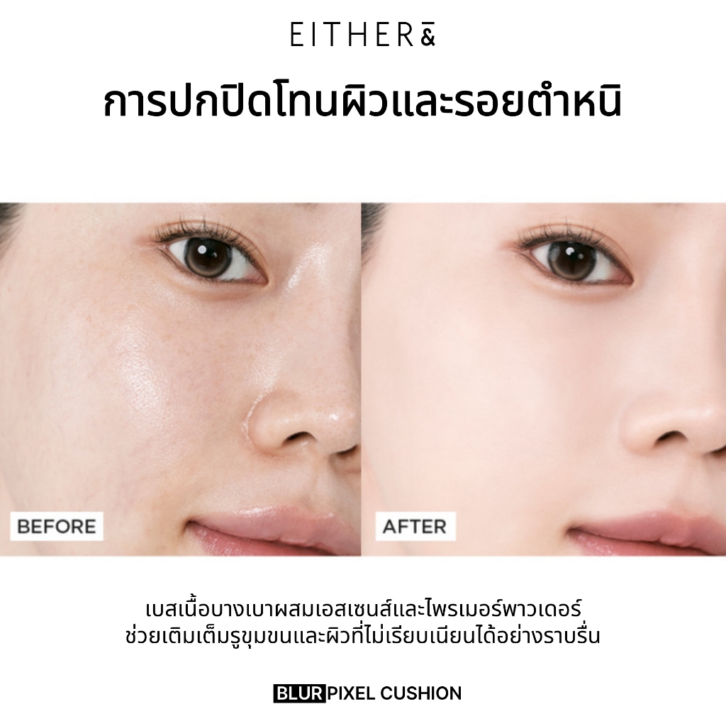 EITHER& คุชชั่น Blur Pixel Cushion 12g SPF50+ PA+++ │ ปกปิดเนียนกริบ คุมมันดีเยี่ยม ติดทนนาน