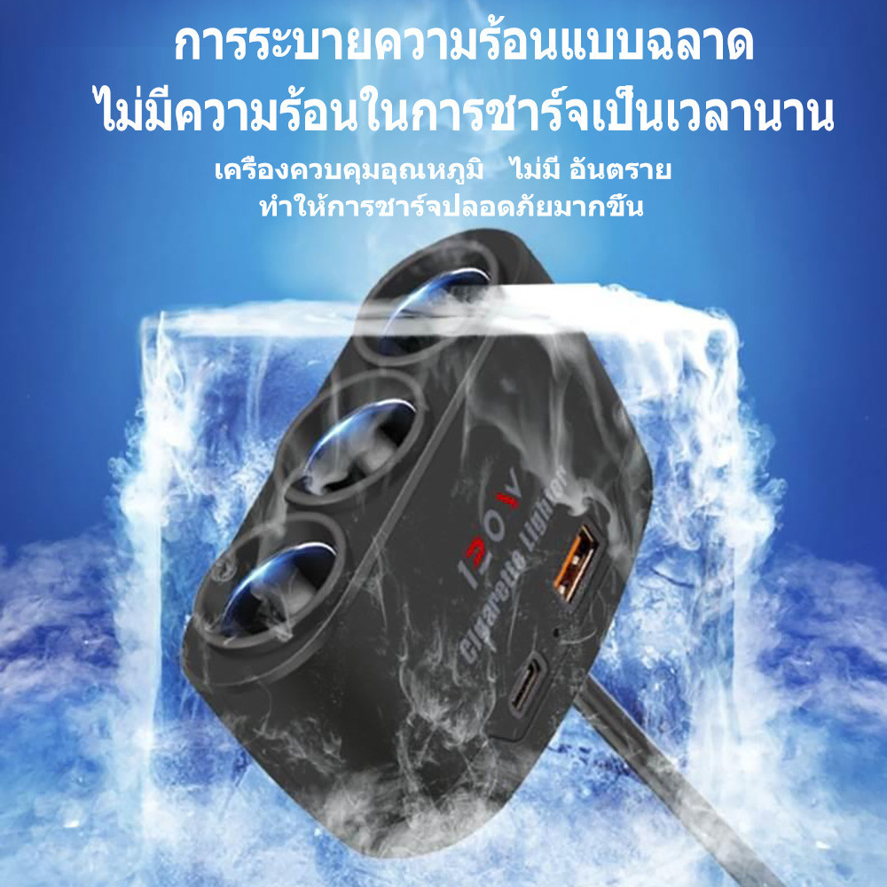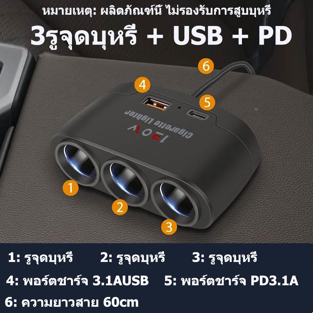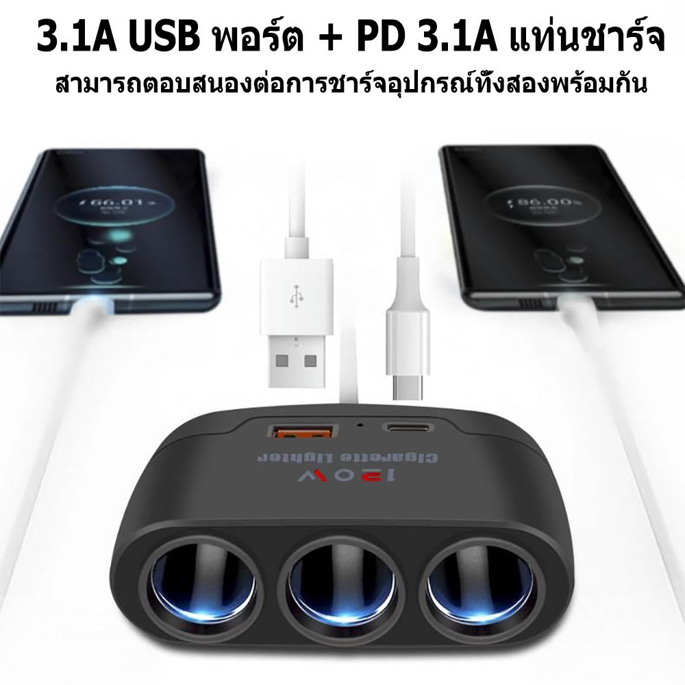 3 in 1อะแดปเตอร์ที่ชาร์จในรถยนต์ 120W 12V 24V 3 ซ็อกเก็ต ที่จุดบุหรี่ USB LED คู่ ชาร์จเร็ว สําหรับ DVR GPS Dashcam D24