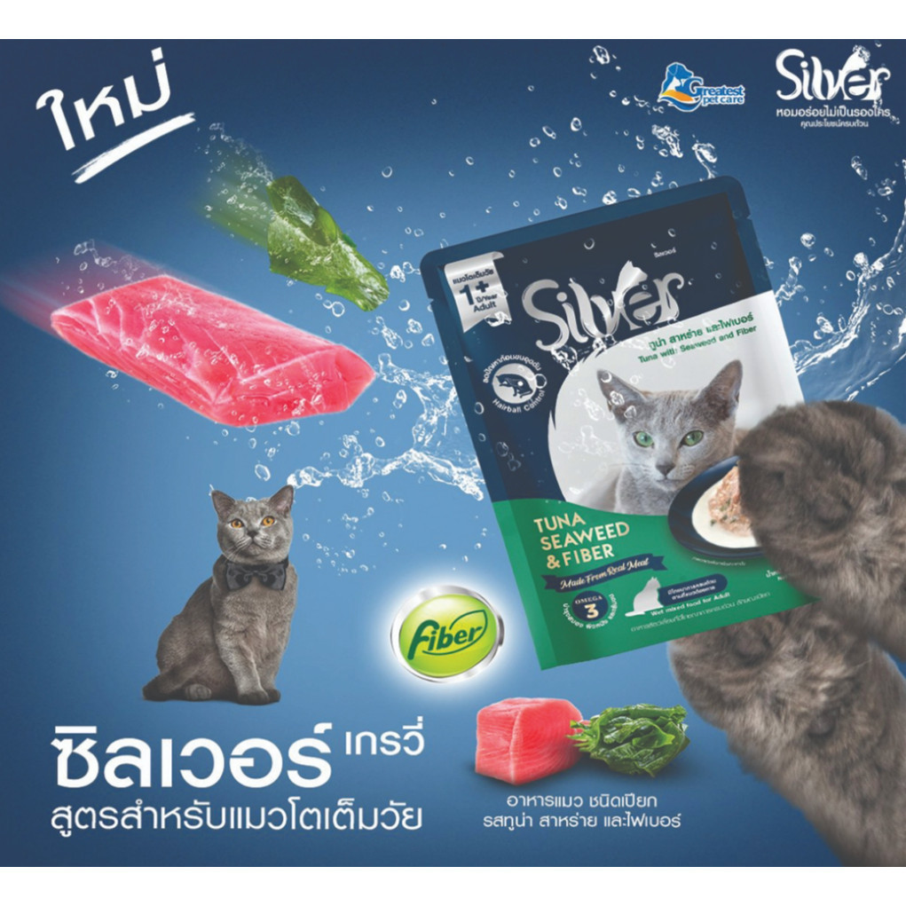 [ยกลัง 48ซอง] SILVER Gravy แมวเปียกในเกรวี่ สำหรับแมวทุกช่วงวัย 85 กรัม