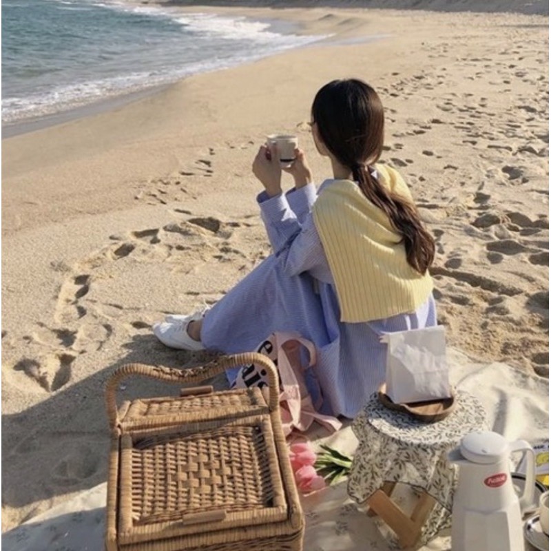 ผ้าด้ายดิบฝ้ายสีครีม ปูชายหาดริมทะเล ผ้าพื้นสีวินเทจ พร็อพถ่ายรูปสินค้า ผ้าปูปิกนิก ปูโต๊ะ ทำฉาก
