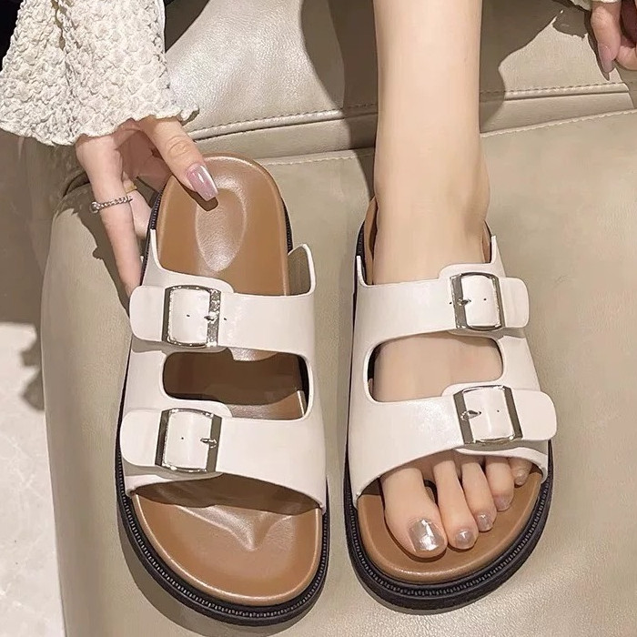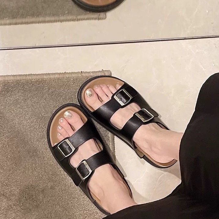 icyรองเท้าแตะ ยางPVC แบบสวม สายคาดคู่ สายคาดปรับระดับได้ แฟชั่น วินเทจ สำหรับผู้หญิง x109