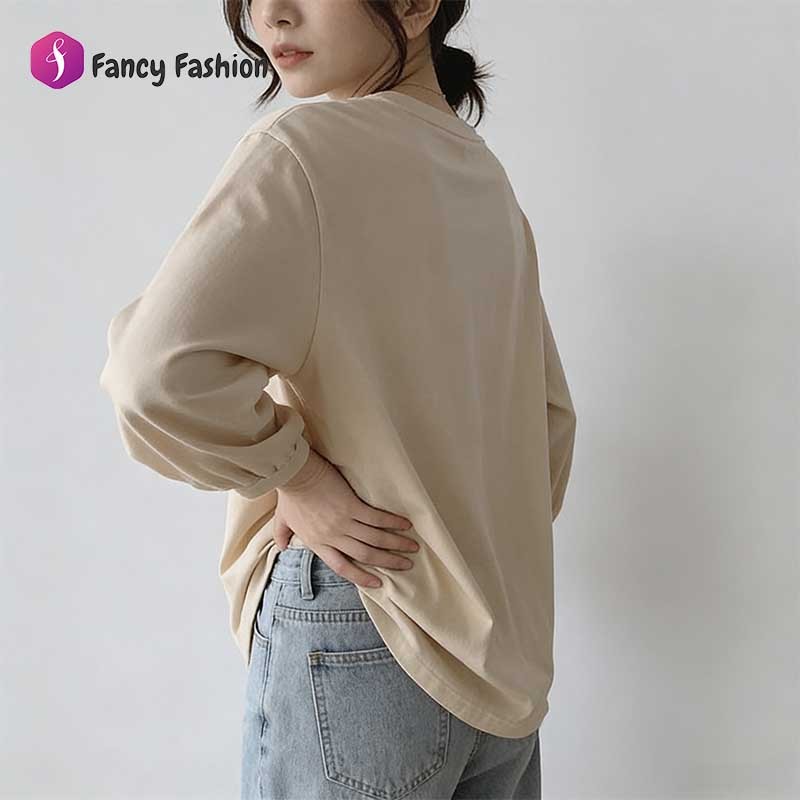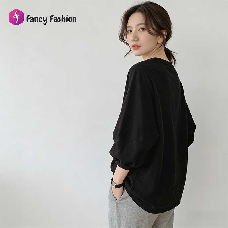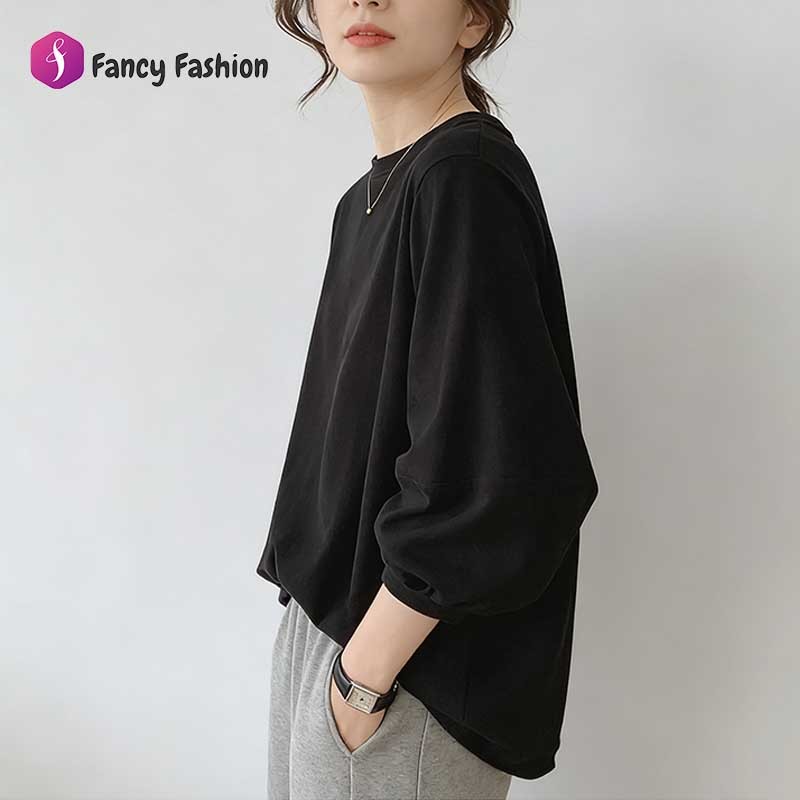 Fancy เสื้อแขนยาวทรงหลวมสำหรับผู้หญิง เสื้อผ้าสาวอวบน่ารักๆ ลำลองทรงหลวม เสื้อยืดแขนบอลลูนแฟชั่นมาใหม่สวยๆ สีพื้น
