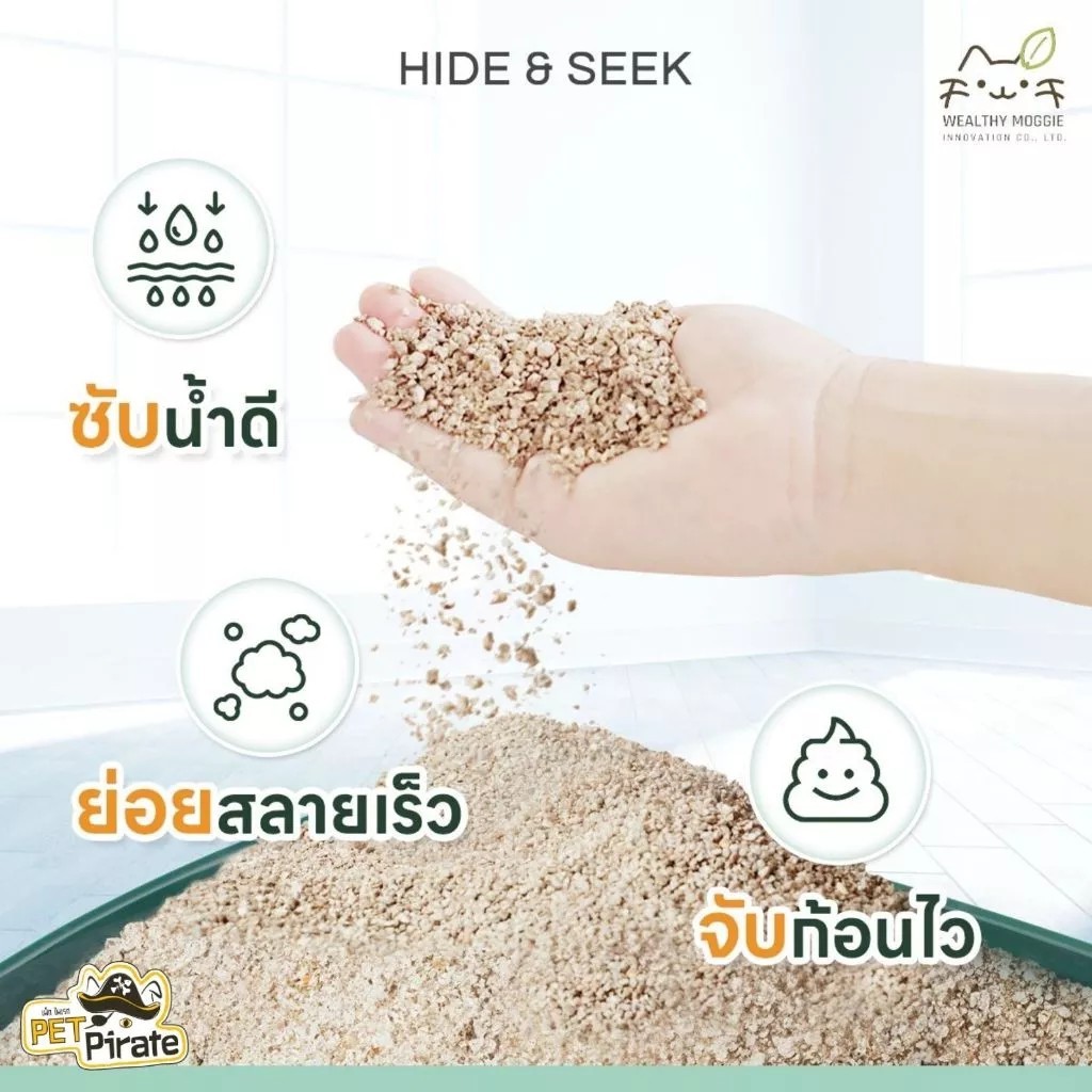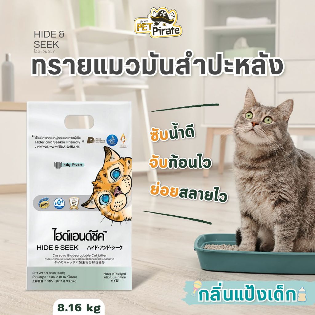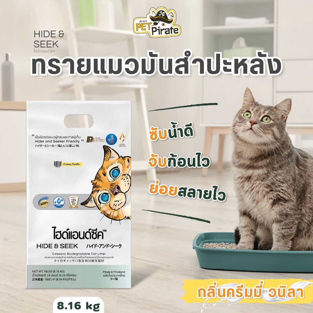 Hide & Seek ทรายแมวมันสำปะหลัง ออร์แกนิค น้ำหนักเบา ควบคุมกลิ่น ย่อยสลายแม้ทิ้งชักโครก 8.16 kg