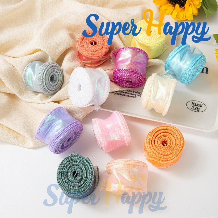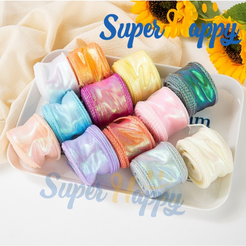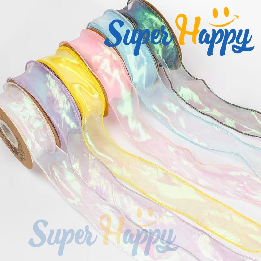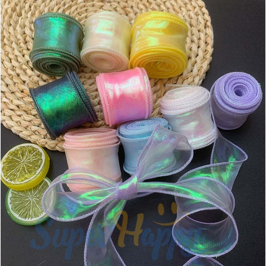 ริบบิ้นผ้าแก้วโฮโลแกรม (ยาว10หลา) ริบบิ้นชีฟองหางปลา 4 เซน | DIY ของขวัญ งานฝีมือ ตกแต่งกล่อง