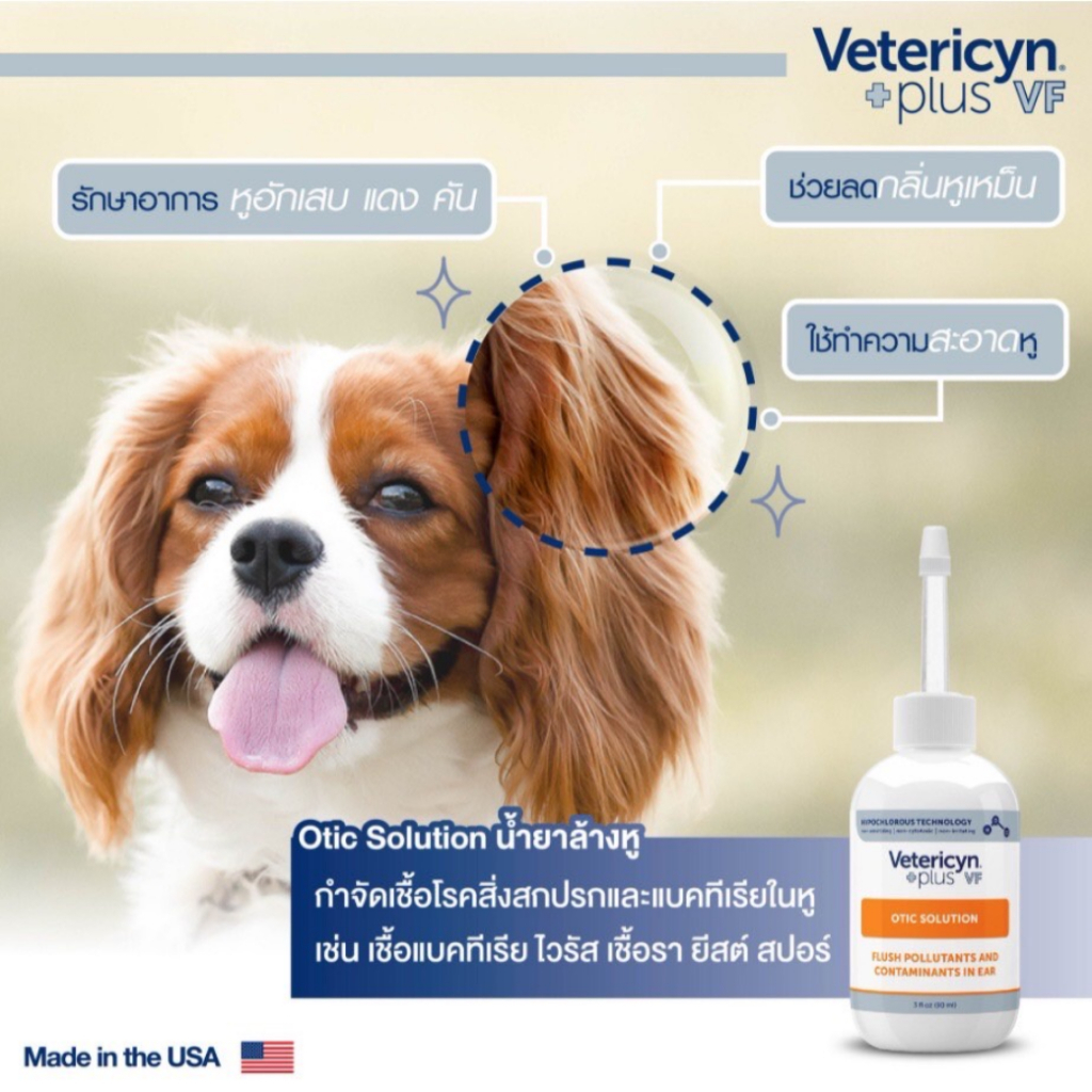 Vetericyn Plus VF Otic Solution น้ำยาล้างหู สัตว์เลี้ยง ใช้ล้างและทำความสะอาดช่องหูและใบหู 90ml