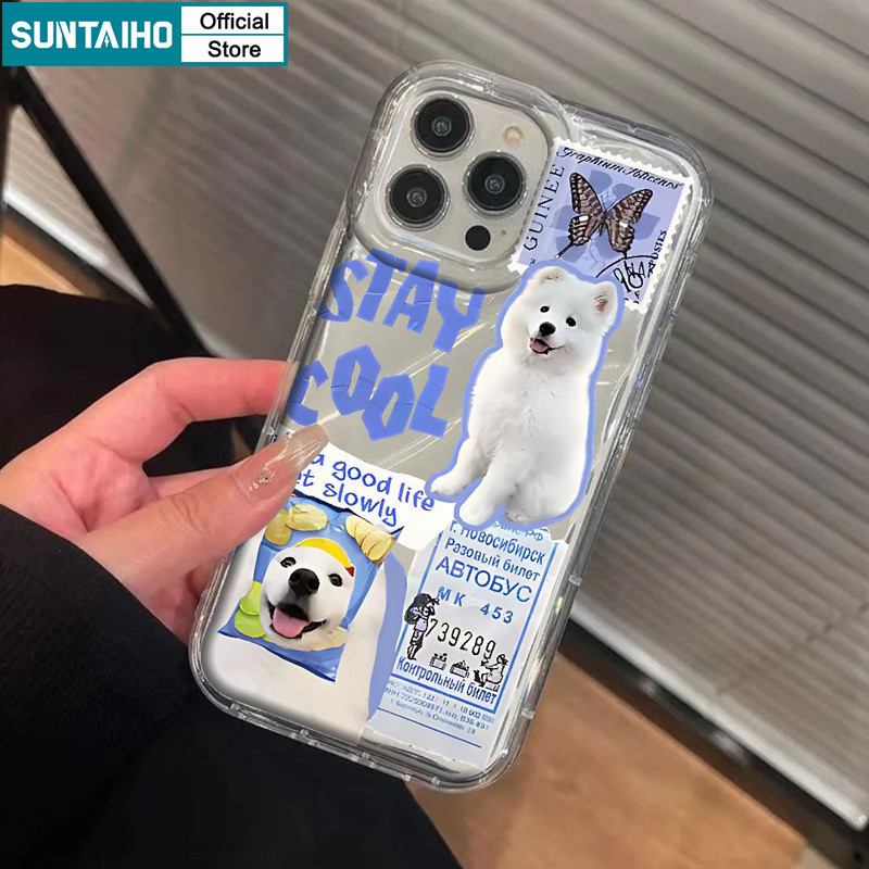 Suntaiho เคสไอโฟน ตลกน่ารักปลอกแมวสุนัขแสตมป์รูปแบบเคสโทรศัพท์สําหรับ Iphone 15 14 12 13 11 Pro Max IP 7 8 Plus Iphon X Xs XR Xs Max TPU ซิลิโคนนุ่มพรีเมี่ยมกันกระแทกปกหลัง