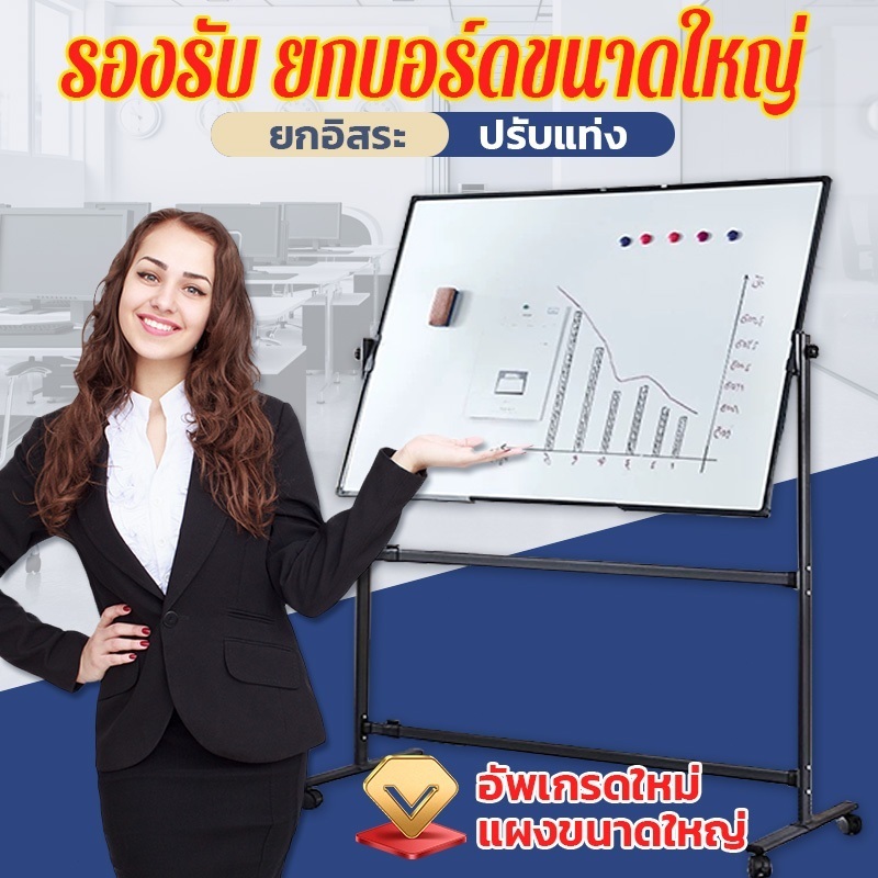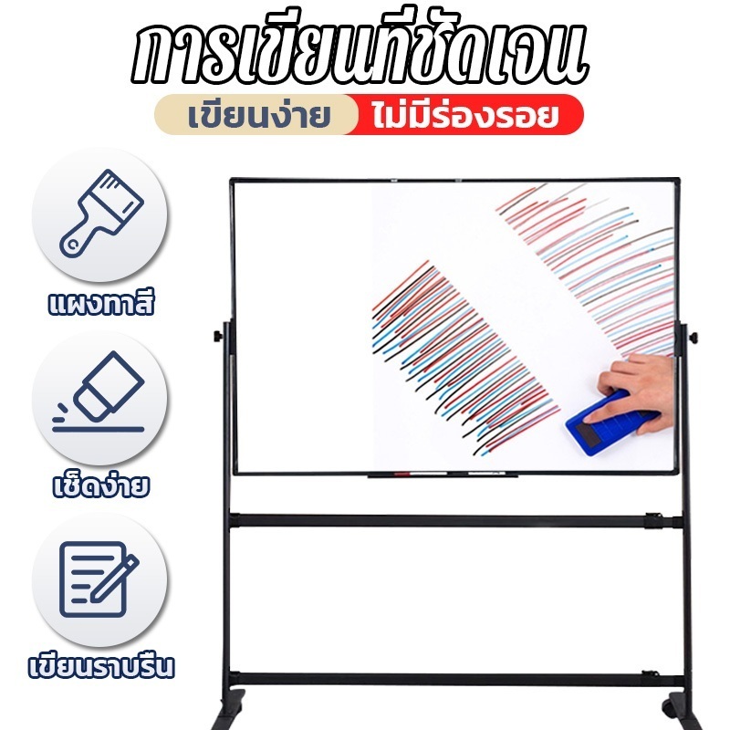 กระดานไวท์บอร์ด White board เขียนลบได้ เป็นแม่เหล็ก มีตะขอแขวนได้ อุปกรณ์สำนักงาน 90*120cm แม่เหล็กดูดสองด้าน การสอน