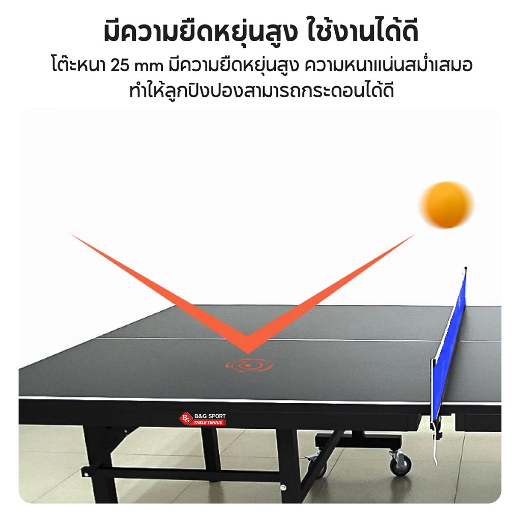 BG โต๊ะปิงปอง มีล้อ Table Tennis มาตรฐานแข่งขัน พับเก็บง่าย 5006 Plus หนา 25 mm. สีดำ สวย ทนทาน