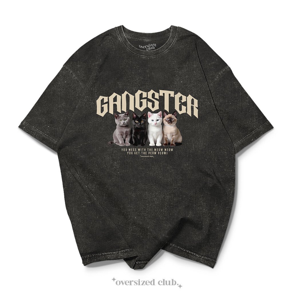 เสื้อฟอก ทรงโอเวอร์ไซส์ รวมลายหมาแมว Gangster Bleached Oversized Tee [Oversize Cotton 100% by Oversized Club]
