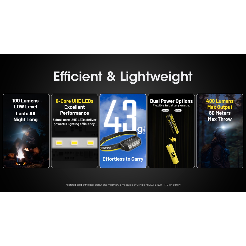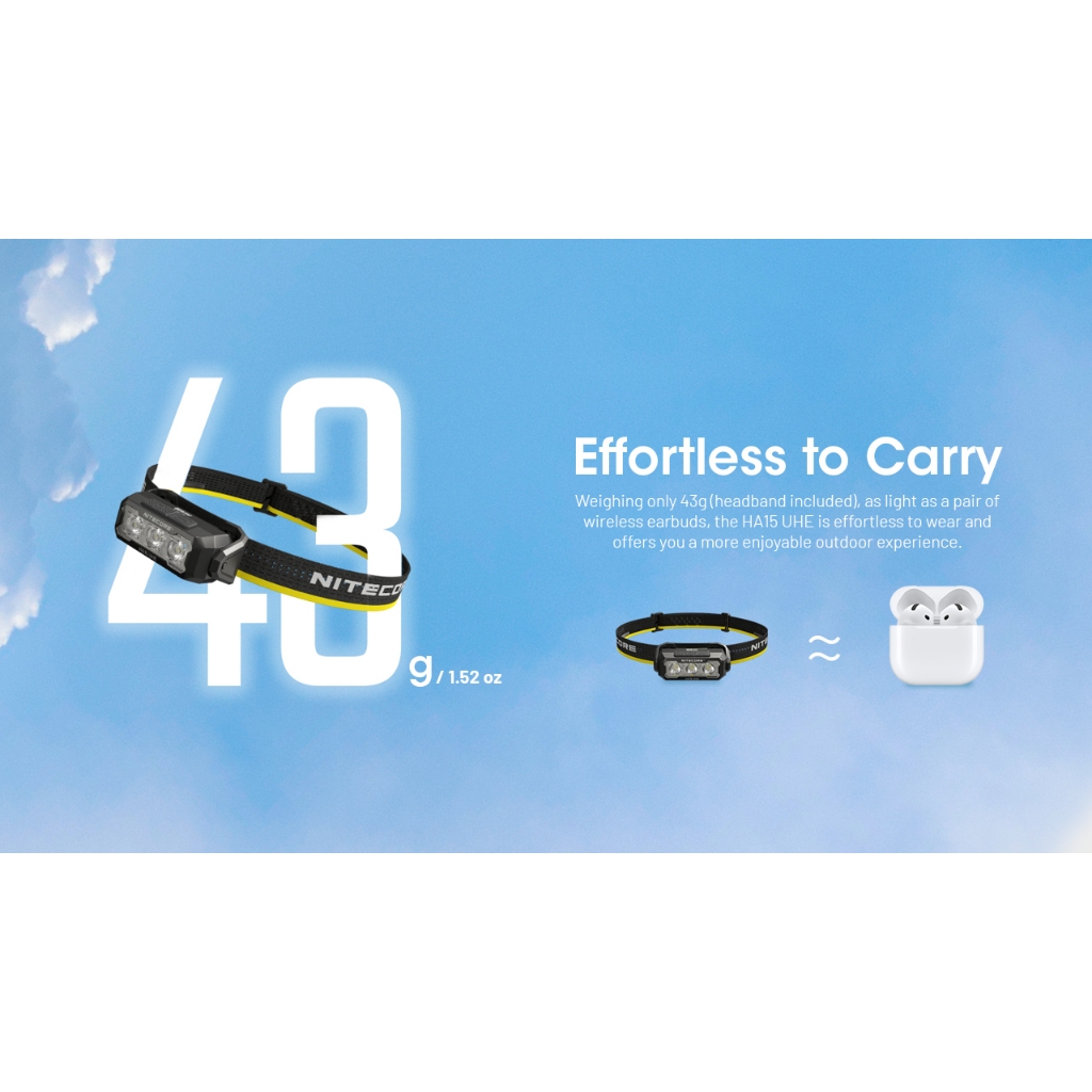 ไฟฉายคาดหัว Nitecore HA15 UHE ความสว่าง 400lm ถ่าน AA 1 ก้อนหรือ14500