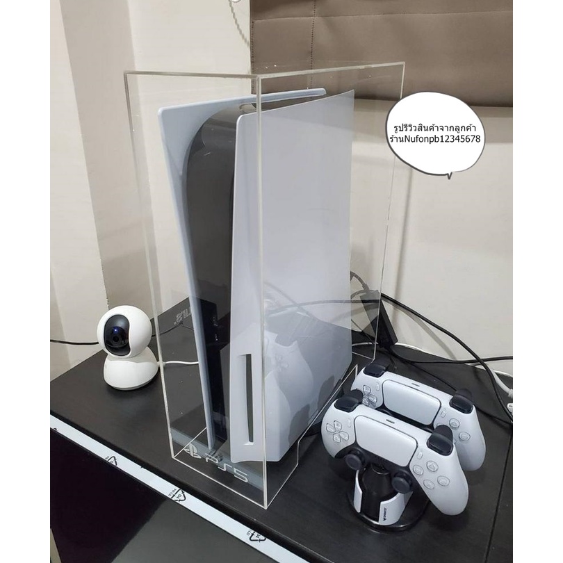 กล่องครอบกันฝุ่นเครื่อง PS5 แนวตั้งรุ่นแรก มีลายสามด้าน งานอะคริลิคแท้ผลิตในไทย ไม่ครอบตอนเล่นเกมนะคะ!!