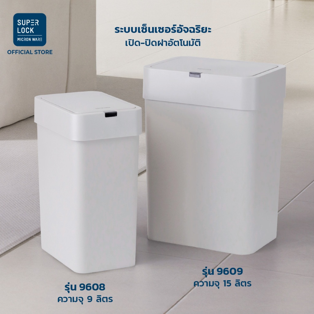 Super Lock ถังขยะเซนเซอร์ พลาสติกอัจฉริยะ เปิดปิดอัตโนมัติ เก็บกลิ่นได้ดี ขนาด 9-15 ลิตร 9608,9609