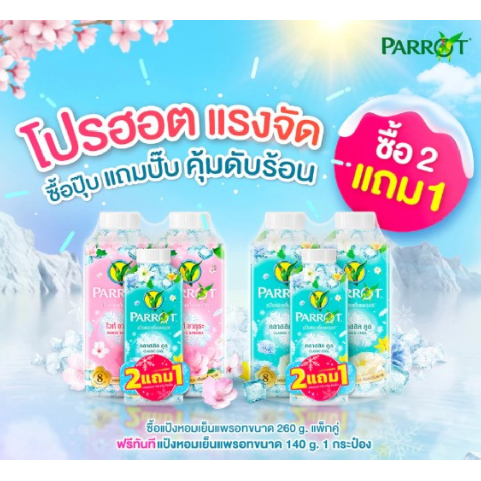 แพรอท แป้งหอมเย็นสูตรเพอร์ฟูมคูลลิ่ง ขนาด 260กรัมx 2 ขวด แถมขนาด 140 กรัม*//*แพ็ค 2 แถม 1*//*