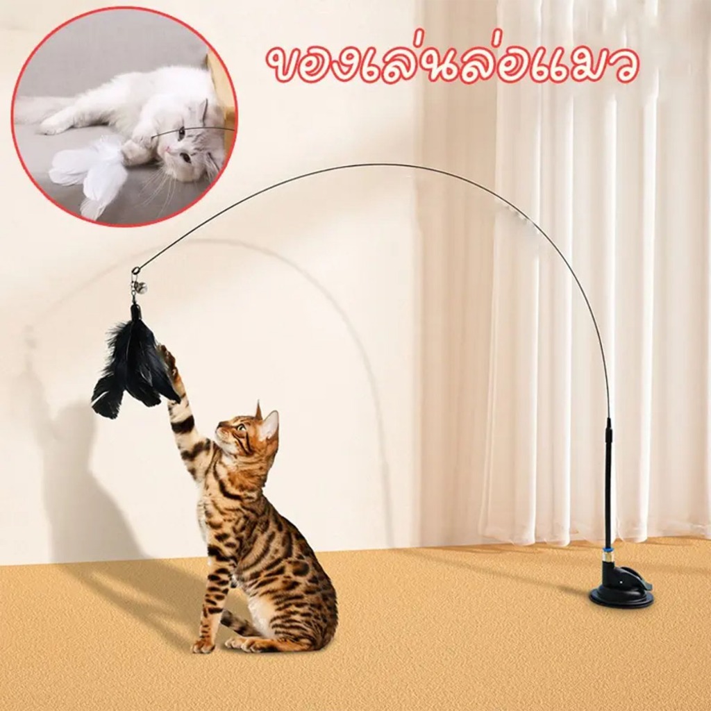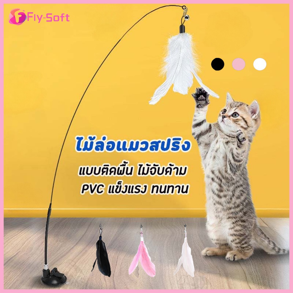 Fly-soft ของเล่นแมว ของเล่นล่อแมว ติดตก ติดแทงแมว ขนนก สำหรับแมว ของเล่นแมว
