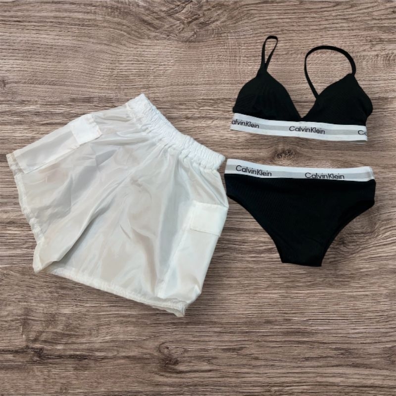 เซ็ท3ชิ้น ใส่ดล่นสงกรานต์ ชุดชั้นในขอบยาง+กางเกงขาสั้นสีขาวผ้าร่ม