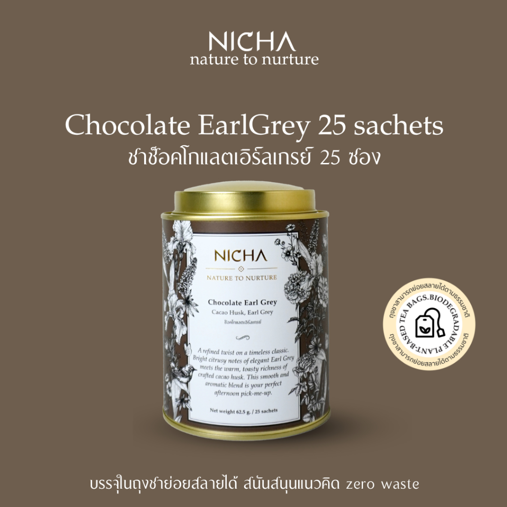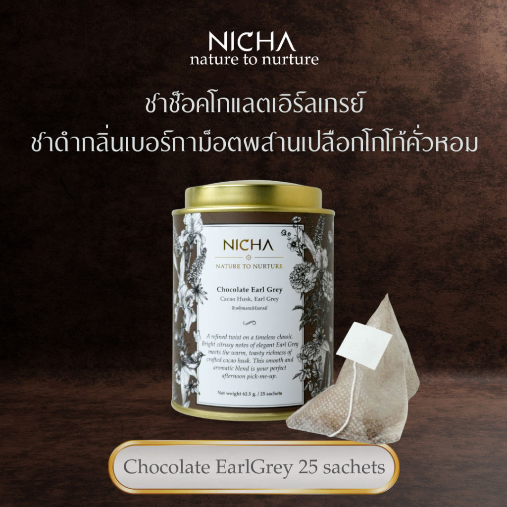 ชาช็อกโกแลตเอิร์ลเกรย์ 25 ซอง NICHA Chocolate Earl Grey Tea 25 sachets จากชาเปลือกโกโก้