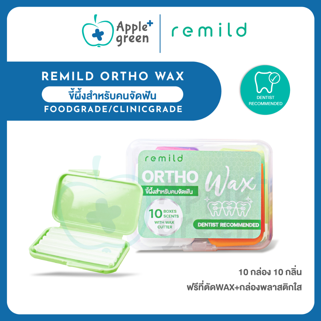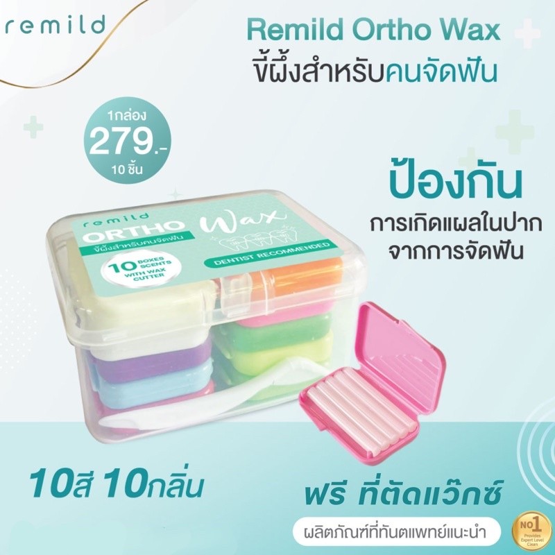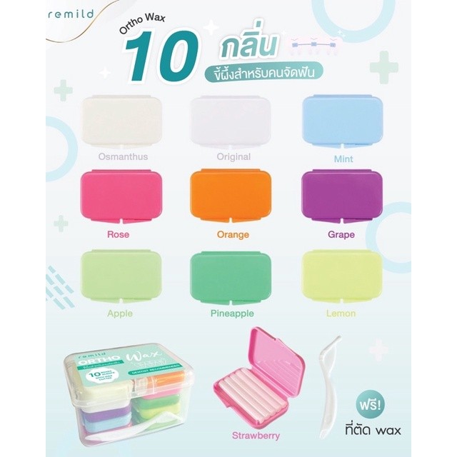 Remild ortho wax ขี้ผึ้งสำหรับคนจัดฟัน 10 กล่อง 10 กลิ่น ฟรีที่ตัดwax+กล่องพลาสติกใส