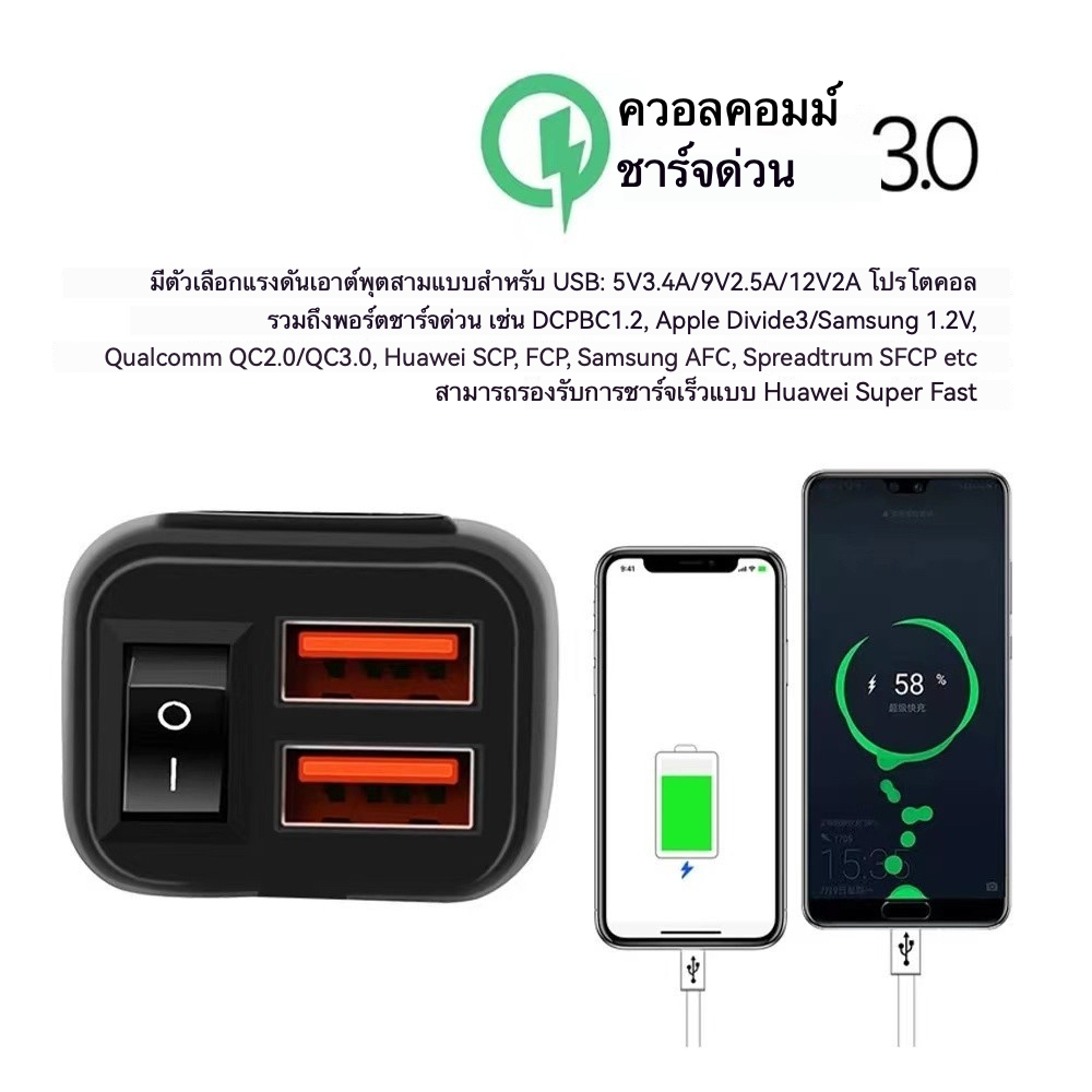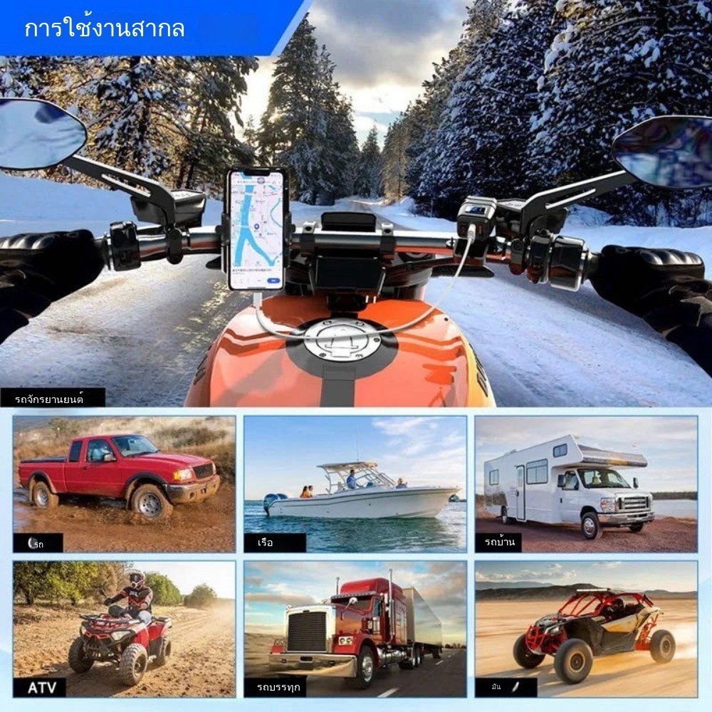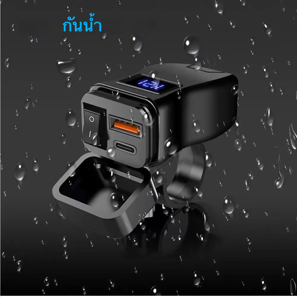 🚚จัดส่งเร็ว🚚 ชาร์จเร็ว PD+QC3.0 ที่ชาร์จโทรศัพท์มอเตอร์ไซค์ | 2USB+Type-C | มีมิเตอร์ดิจิตอล | กันน้ำ IPX6 | ใช้ได้กับมือถือทุกรุ่น