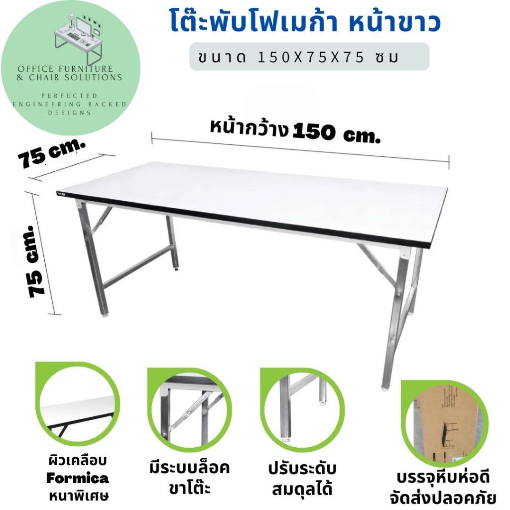 โต๊ะพับอเนกประสงค์ หน้าโฟเมก้า ขาชุปโครเมี่ยม ขนาด 150x75x75 cm.