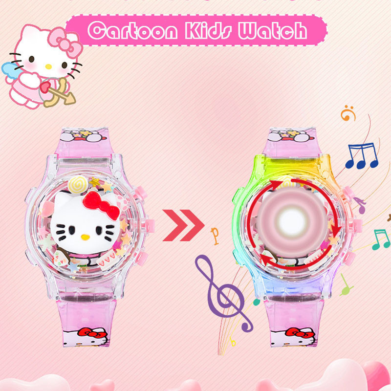 ล่าสุด ซานริโอ คุโรมิ ส่องสว่างเพลงนาฬิกาหมุนพลิก ทํานอง เด็กที่มีสีสันกระพริบนาฬิกา นํา ของเล่นของขวัญวันเกิด