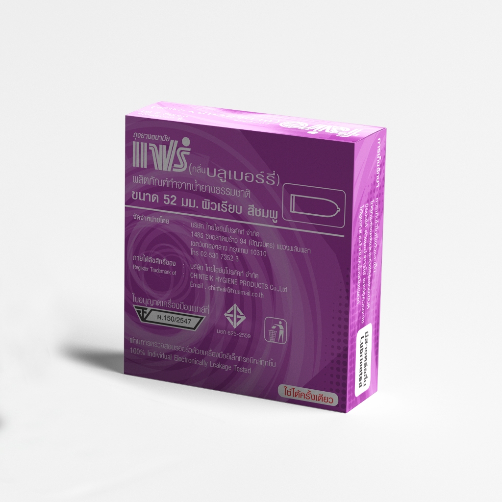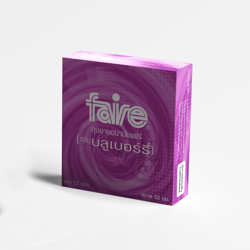 [12 แถม 12] แฟร์ บลูเบอร์รี่ ถุงยางอนามัย ผิวเรียบ 52 มม จำนวน 24 กล่อง Faire Blueberry Condom