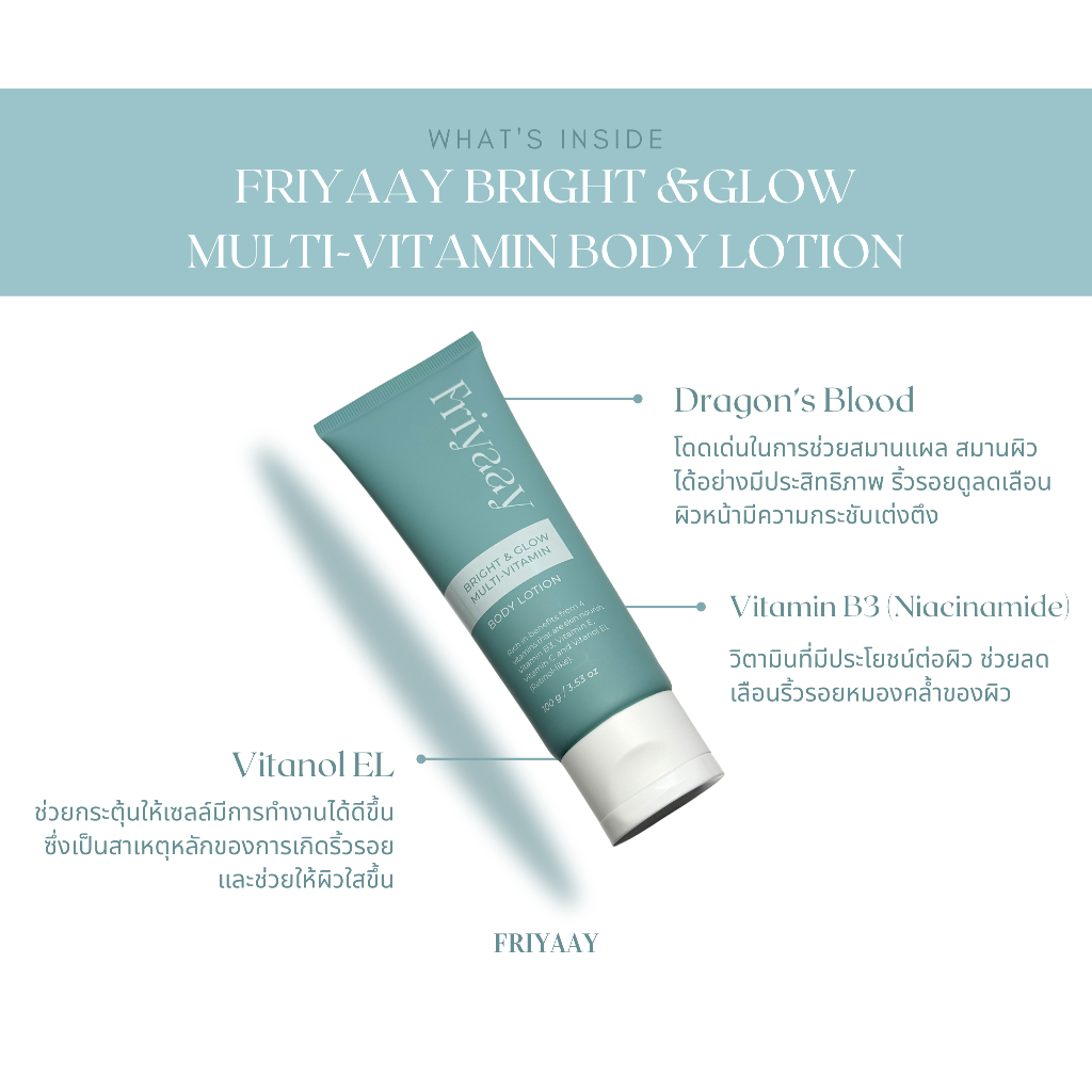FRIYAAY BRIGHT & GLOW MULTI-VITAMIN BODY LOTION ฟรายเย่ ไบร์ทแอนด์โกล์ดมัลติวิตามินบอดี้โลชั่น
