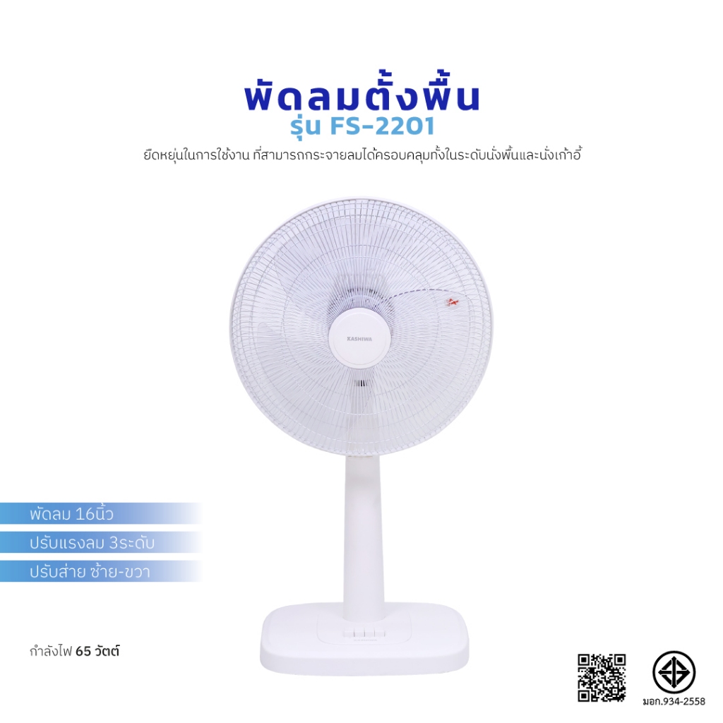 [โค้ดไลฟ์ลดสูงสุด50%] KASHIWA พัดลมตั้งพื้น 16 นิ้ว ปรับระดับความสูง แรงลม 3 ระดับ รุ่น FS-2201