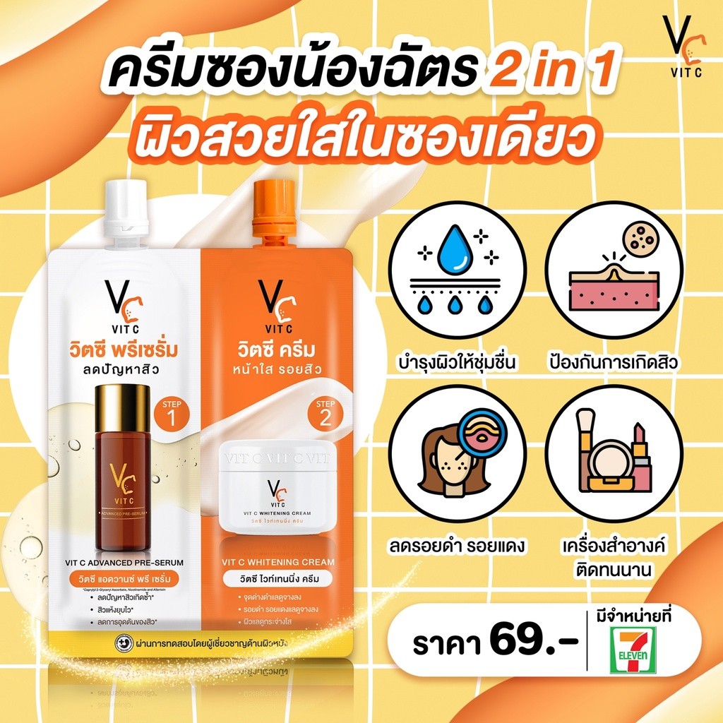 (กล่องX6ซอง) Vc VIT C รัชชา Ratcha วิตซี แอดวานซ์ พรี-เซรั่ม + วิตซี ไวท์เทนนิ่ง ครีม 48กรัม