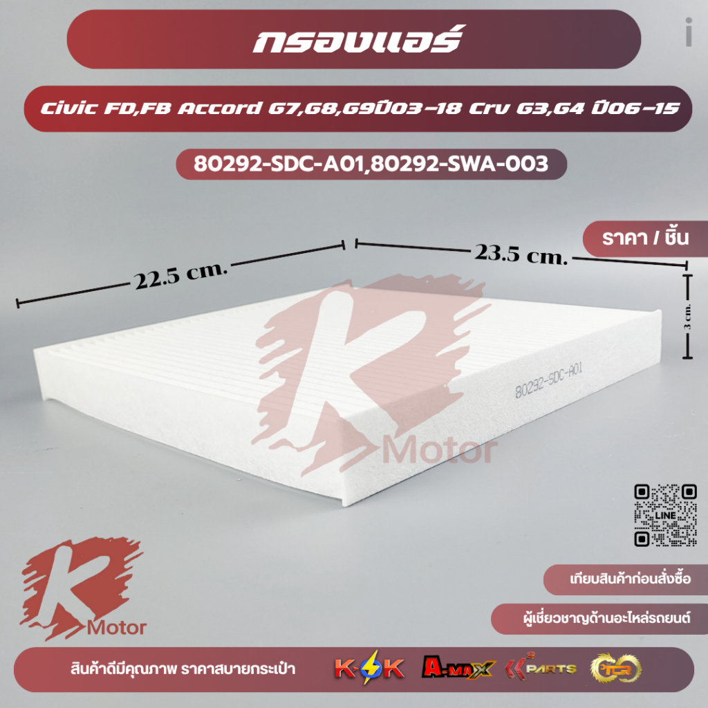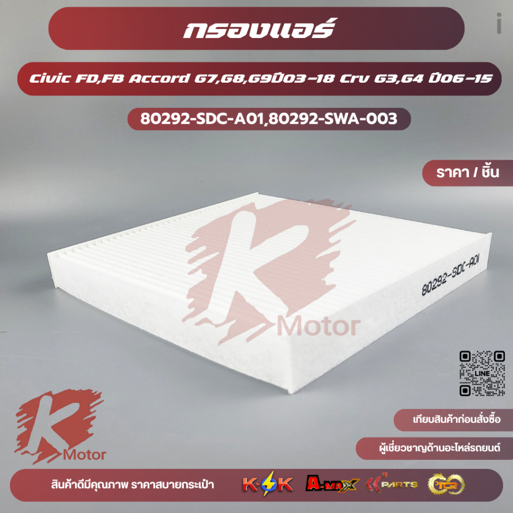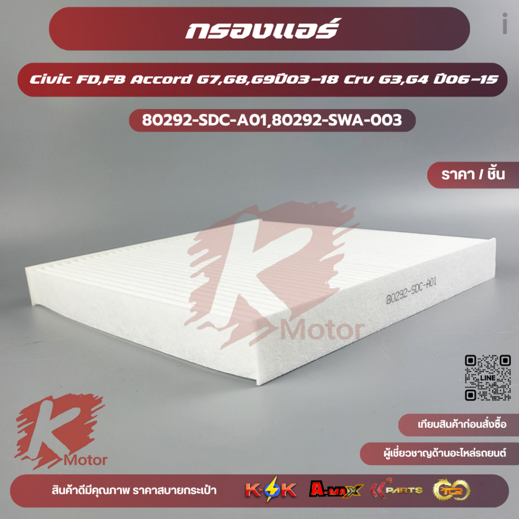 กรองแอร์ Civic FD,FB Accord G7,G8,G9ปี03-18 Crv G3,G4 ปี06-15#80292-SDC-A01,80292-SWA-003***สินค้าดี ราคาถูก สั่งเลย ***