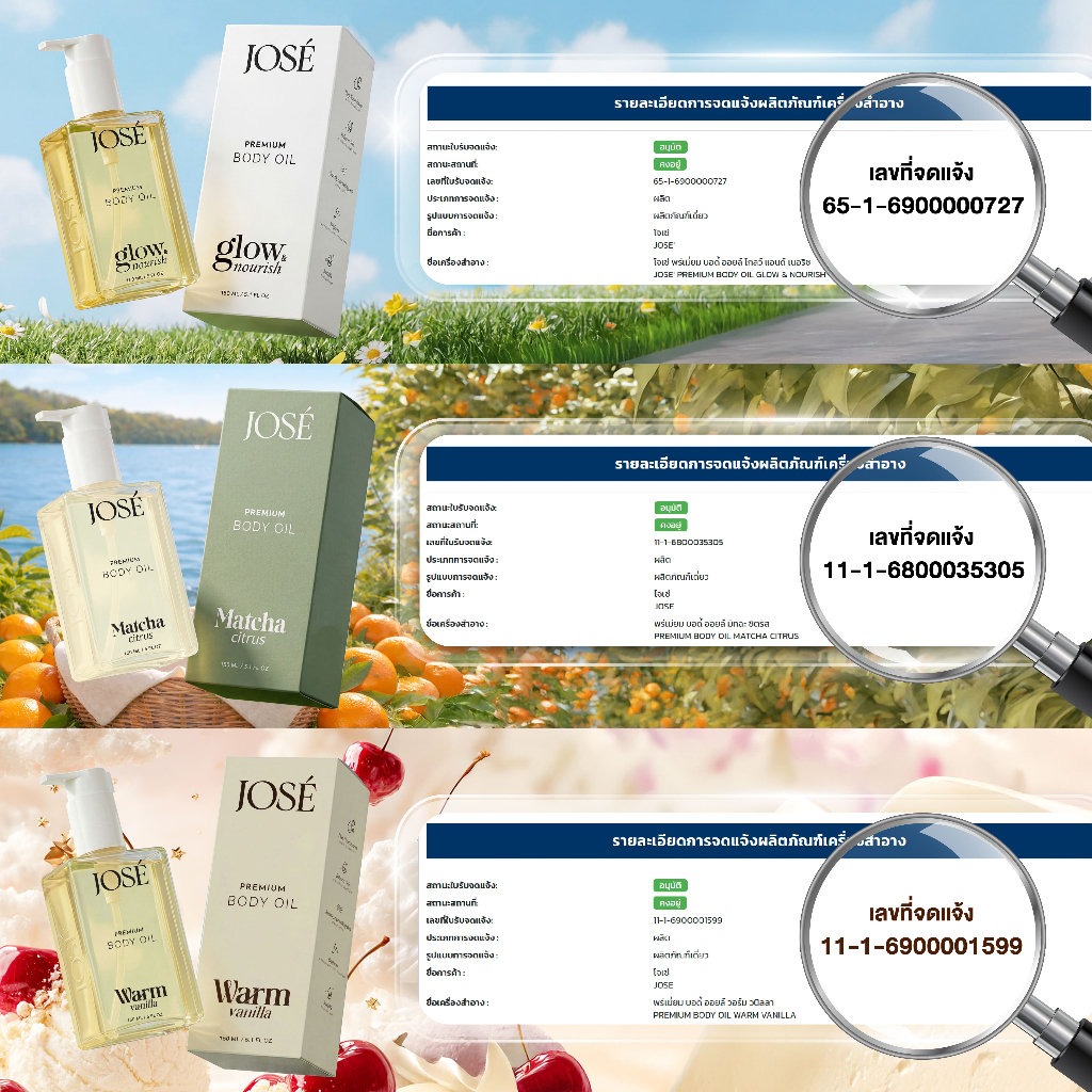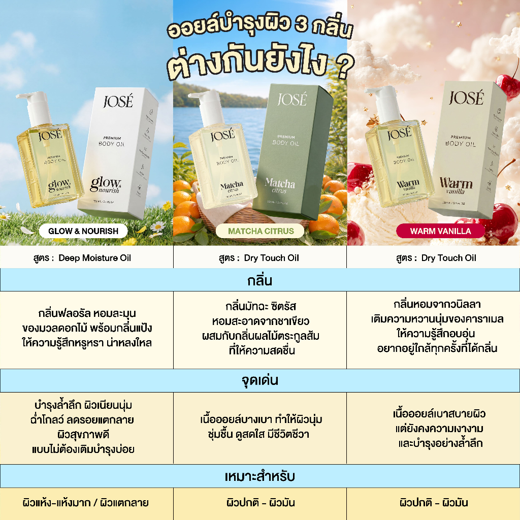 [บริษัทโดยตรง] - JOSE PREMIUM BODY OIL โจเซ่ พรีเมียม บอดี้ ออยล์ ขนาด 150 ml. 1 ขวด (เพิ่มกลิ่นใหม่)