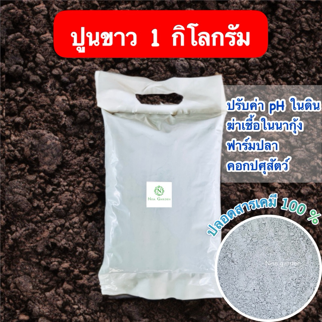 Nisa Garden ปูนขาว 1 กก. ใช้ปรับสภาพดิน บำรุงดิน ปรับค่า pH ฆ่าเชื้อในฟาร์มปลา นากุ้ง คอกสัตว์