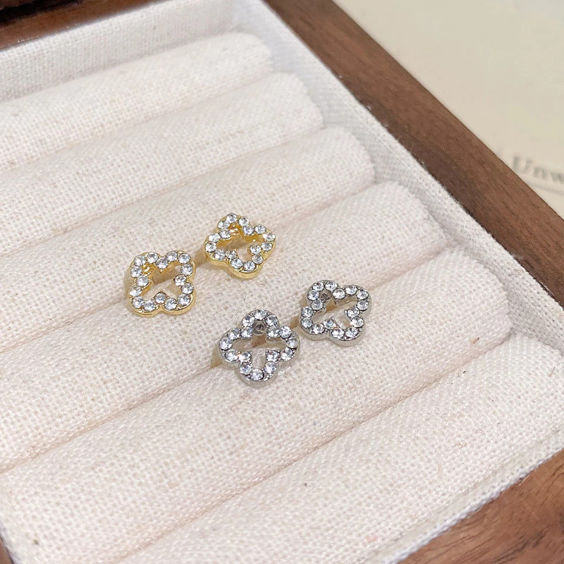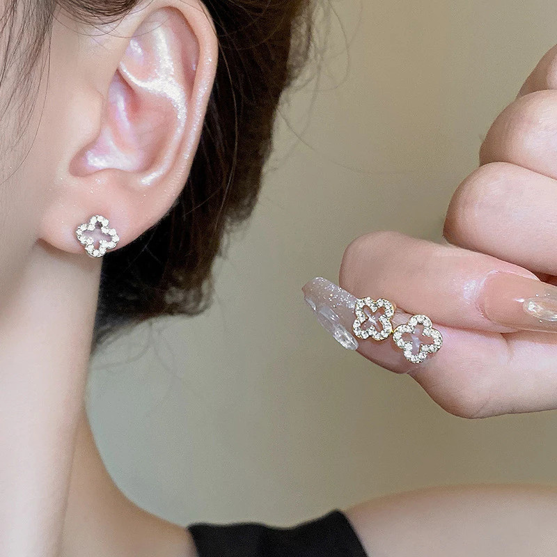 หรูหราเรียบง่ายประณีต Four-Leaf Clover ต่างหูเงินแท้หญิง High-End Tempera