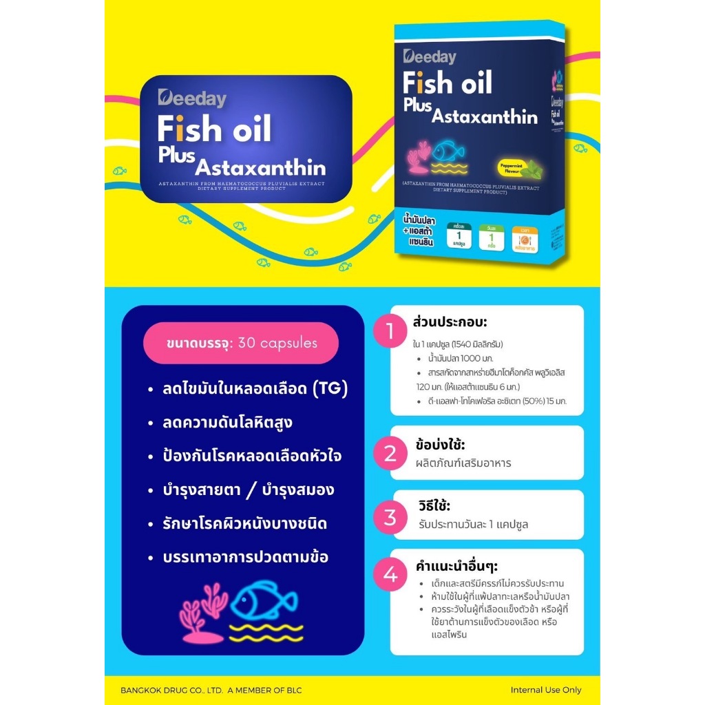 Deeday Fish oil Plus Astaxanthin 30's ดีเดย์ฟิชออย พลัส แอสตาแซนทีน 1 กล่อง 30 แคปซูล