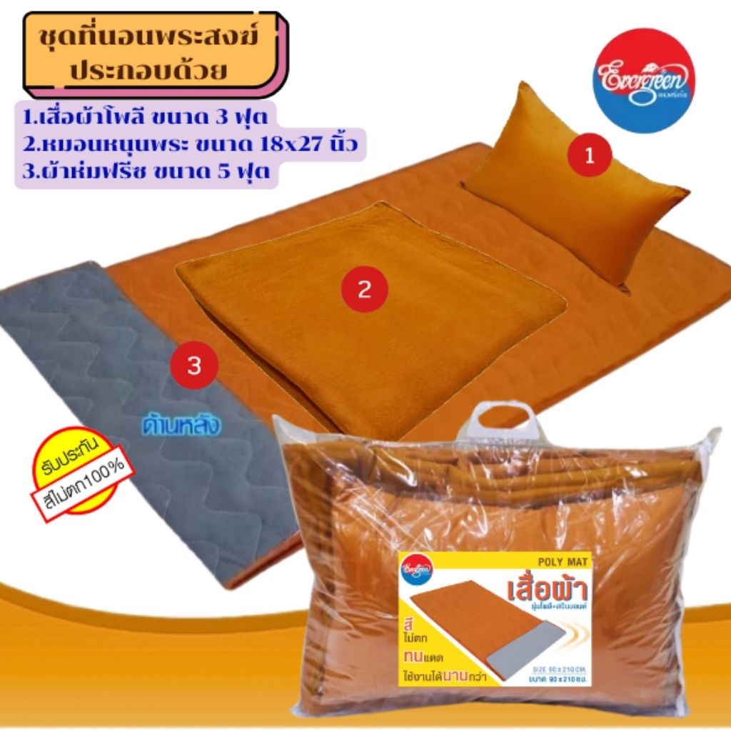 #ชุดที่นอนถวายพระ(เสื่อโพลี3ฟุต+หมอนใบใหญ่18X27นิ้ว+ผ้าห่มขนาด5ฟุต)