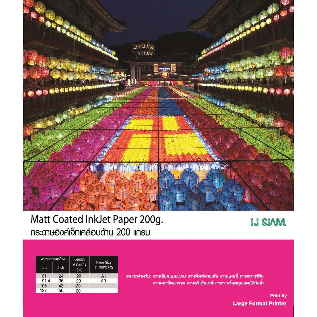 I.J. SIAM Inkjet Matt Coated / กระดาษเคลือบด้าน 200gsm 36 นิ้ว/42 นิ้ว ยาว 20 เมตร