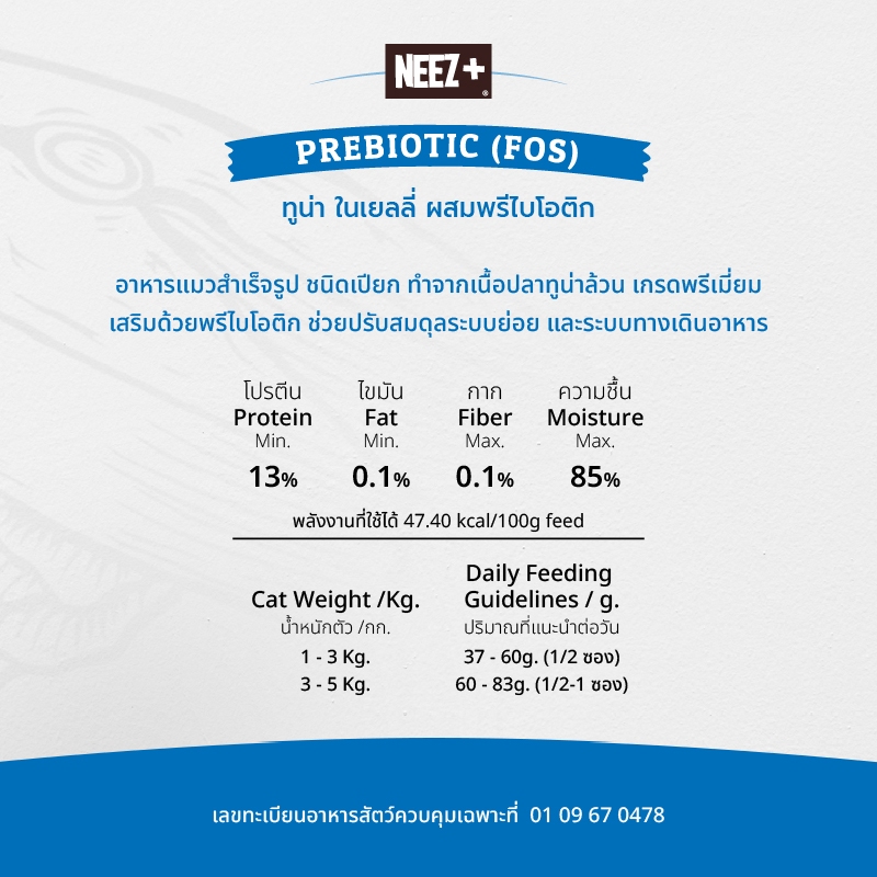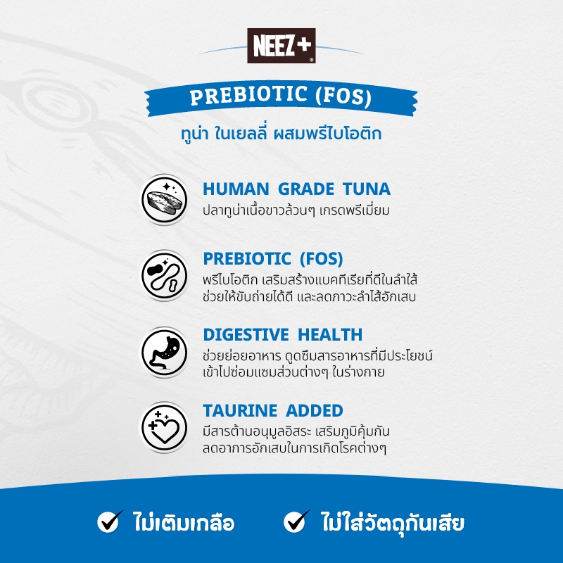 (JPB) NEEZ+ อาหารเปียก พรีเมี่ยมเยลลี่ สูตรปรับสมดุลระบบทางเดินอาหาร รสปลาทูน่า 1 กล่อง