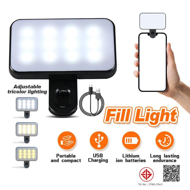 ไฟติดหัวกล้อง โคมไฟเซลฟี่ LED 3 โหมด ปรับได้ ขนาดเล็ก พกพาง่าย ถนอมสายตา ชาร์จไฟได้ สําหรับสมาร์ทโฟน แล็ปท็อป กล้อง