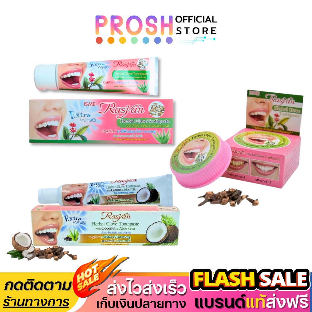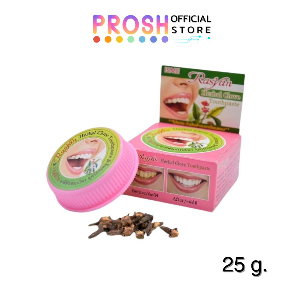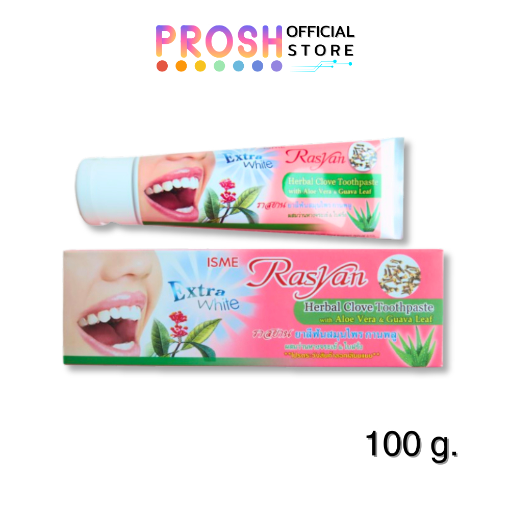 ขายดี✅ ยาสีฟันสมุนไพร ราสยาน Rasyan สูตรกานพลู ผสม ว่านหางจรเข้ และ ใบผรั่ง